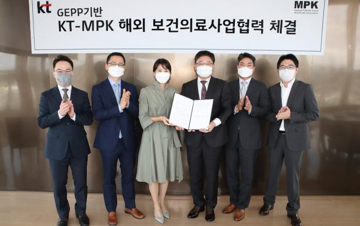 KT가 ㈜메디컬파트너스코리아(이하 MPK)와 서울 종로구 KT 광화문빌딩 East에서 ‘해외거점형 대한민국 디지털 & 바이오 헬스 사업을 위한 업무협약(MOU)’을 체결했다고 21일 밝혔다. 협약식에는 KT AI/BigData사업본부장 김채희 상무, MPK 김헌