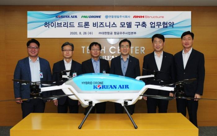 대한항공이 자사가 개발한 하이브리드 드론을 시장에서 본격적인 비즈니스 모델로 자리잡을 수 있도록 협력사 지원에 나선다.대한항공은 지난 8월 26일 부산 강서구 테크센터에서 이수근 대한항공 부사장, 강범수 피앤유드론 대표이사, 김용수 연합정밀 대표이사, 안현수 에이엔에이