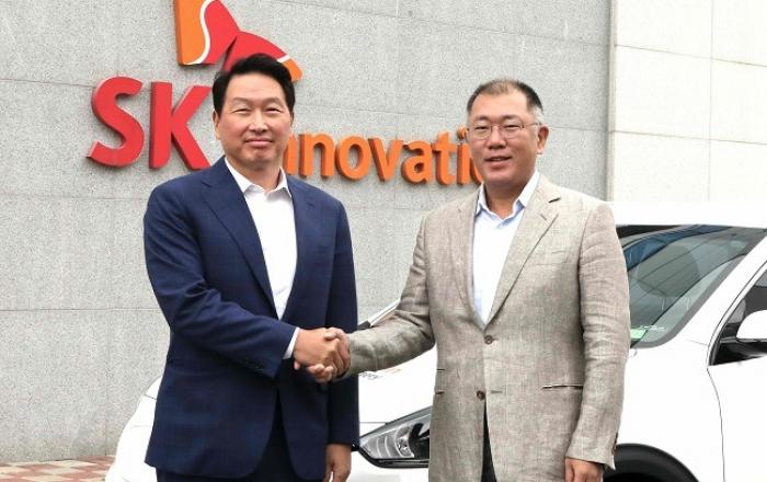 SK그룹과 현대차그룹이 차세대 전기차 배터리 기술 및 미래 신기술 분야 협력 방안을 논의했다.현대차그룹 정의선 수석부회장을 비롯, 현대·기아차 연구개발본부 알버트 비어만 사장, 기획조정실 김걸 사장, 상품담당 서보신 사장, 현대모비스 박정국 사장 등은 7일 충남 서산에