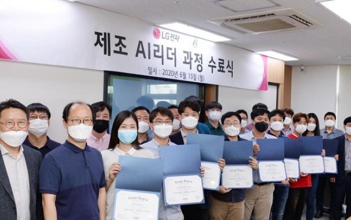LG전자가 인공지능과 빅데이터에 능통한 전문가를 육성해 제조 분야의 디지털 전환을 가속화한다. LG전자는 15일 경기도 수원시 성균관대학교 자연과학캠퍼스에서 '제조 AI 리더 과정' 수료식을 열었다. 이날 AI 리더로 선정된 직원 약 20명을 비롯해 LG전자 생산기술원