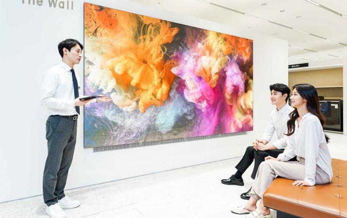 삼성전자가 31일 경기도 수원시에 위치한 갤러리아 백화점 광교점에 ‘더 월’ 체험존을 열었다.더 월은 마이크로 LED를 기반으로 한 차세대 디스플레이로 최고의 홈 엔터테인먼트 경험을 제공하는 초프리미엄 제품이다.이 백화점 8층 삼성전자 프리미엄스토어 입구에 마련된 체험