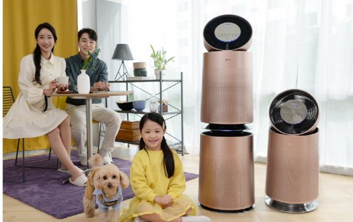 LG전자가 25일 로즈골드 색상을 적용한 '퓨리케어 360° 공기청정기 펫' 신제품 2종을 출시한다. LG전자는 20~30대가 선호하는 색상인 로즈골드를 신제품에 입혔다. 고급스러운 색상이 집안 인테리어와도 잘 어울린다. 퓨리케어 360° 공기청정기 펫은 LG전자가 지