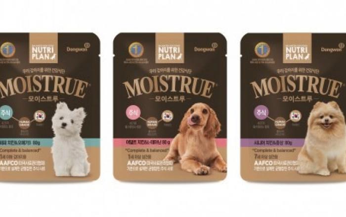 동원F&B의 펫푸드 브랜드 뉴트리플랜이 AAFCO의 기준으로 설계한 반려견용 주식 습식사료 ‘뉴트리플랜 모이스트루 주식’ 3종(퍼피, 어덜트, 시니어)을 출시하고 반려견 습식시장에 진출했다.▲ 반려견용 주식 습식사료 뉴트리플랜 모이스트루 주식 3종을 출시AAFC