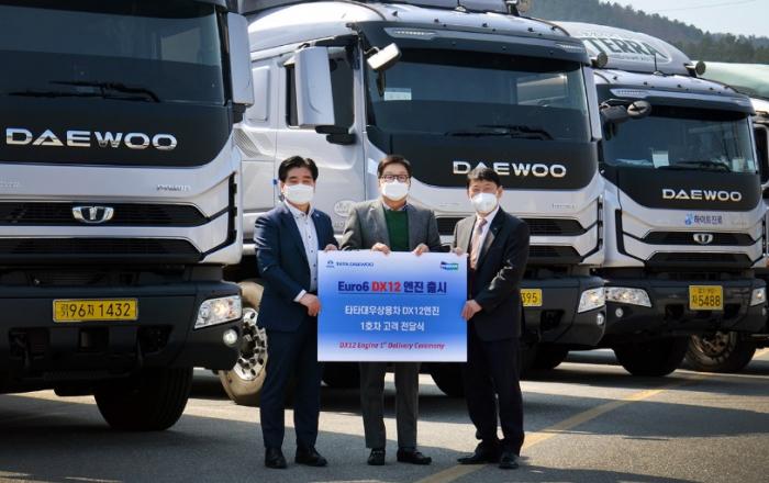 두산인프라코어가 상용차용으로 개발한 유로6(Euro6) 전자식 엔진을 국내에 출시했다. 두산인프라코어는 신형 엔진을 탑재한 타타대우상용차 1호기 ‘프리마’ 트럭을 고객에게 인도했다고 26일 밝혔다. 이번에 첫 선을 보인 엔진은 두산인프라코어가 타타대우상용차에 공급하기