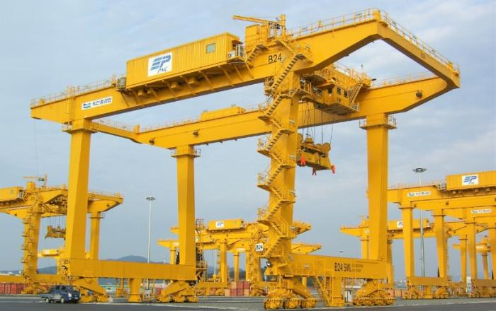 두산중공업은 부산항만공사와 트랜스퍼 크레인(Transfer Crane) 12기 공급계약을 체결했다고 17일 밝혔다. 부산신항 서측 2-5단계 부두에 설치될 예정으로 2022년 3월까지 공급할 계획이다.▲ 두산중공업이 2006년 부산신항 1-1단계에 공급한 트랜스퍼 크레