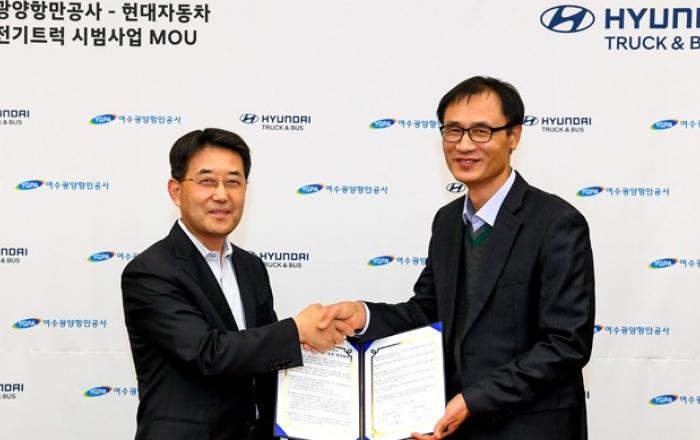 현대자동차와 여수광양항만공사가 물류 운송용 수소전기트럭 상용화를 위해 손을 모았다.현대자동차는 지난 14일(금) 이인철 현대자동차 상용사업본부장과 여수광양항만공사 길인환 운영본부장 등이 참석한 가운데 ‘현대자동차-여수광양항만공사 수소전기트럭 시범사업을 위한 업무협약(M