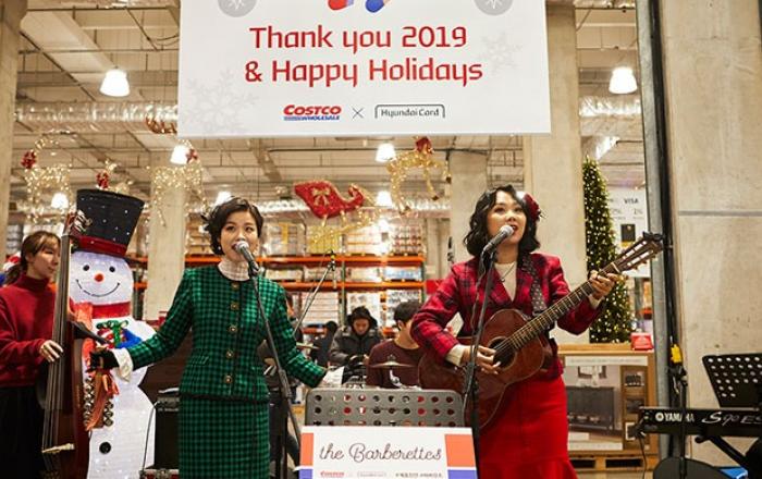 현대카드가 코스트코와 함께 연말 크리스마스를 앞두고 코스트코 매장을 찾은 고객들에게 깜짝 미니 콘서트를 선물했다.현대카드는 5일 코스트코 하남점과 일산점, 6일 공세점과 송도점에서 고객들을 위한 ‘바버렛츠’의 깜짝 미니콘서트를 열었다. 바버렛츠는 여성 2인조 보컬그룹으