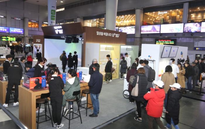 LG유플러스는 서울 용산역 3층 대합실에 U+5G 팝업 체험관을 구축하고 내달 19일까지 운영한다고 25일 밝혔다. 서울의 대표적인 기차역에 구축한 체험관이라는 특색을 살려 승차권 모양의 입장권 발권 등 기차를 타고 여행을 떠나는 스토리텔링 기법으로 만들어진 이번 용산