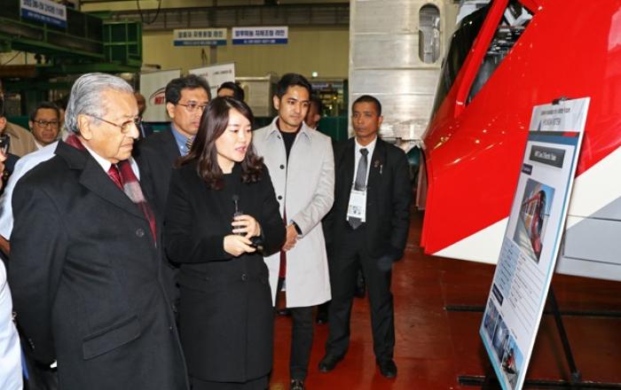 현대로템 창원공장에 말레이시아 총리를 비롯한 정부 대표단이 방문했다.현대로템은 마하티르 빈 모하마드 말레이시아 총리를 포함한 말레이시아 정부 대표단 25명이 창원공장을 방문했다고 27일 밝혔다.한-아세안 특별정상회의를 위해 방한중인 마하티르 총리는 26일 현대로템 창원
