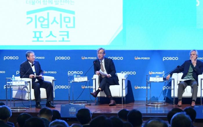 포스코가 기업시민에서 미래의 길을 찾는다.포스코는 11월 5일부터 7일까지 사흘간 인천 송도 인재창조원에서 급변하는 경영환경을 진단하고 그룹의 미래 사업전략을 조망하기 위한 ‘포스코포럼’을 개최했다.이 포럼은 그룹사 전 임원 약 250명이 참석한 가운데 각계 전문가 4