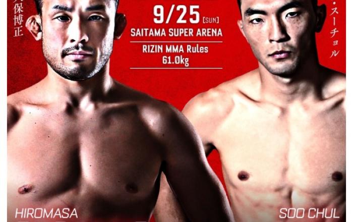 로드 FC 현 페더급 챔피언 김수철이 9월 25일 일본 사이타마 슈퍼아레나에서 열리는 'RIZIN 38' 대회에 출전한다. 상대는 지난 해 열린 RIZIN의 밴텀급 16강 토너먼트 우승자 오기쿠보 히로마사다. 김수철은 로드 FC 전 밴텀급 챔피언 출신으로 지난 '로드