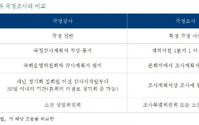 매년 정례적으로 실시되는 국회의 국정감사의 대상기관은 지속적인 증가추세이고, 올해는 834개에 이르렀다. 의회의 중요한 기능이면서 막강한 감독역할을 해야 할 국정감사가 정쟁의 장이 되면서, ‘국정감사 무용론’이 제기되고 있다.국정감사는 헌법(제61조)이 부여한 국정감독