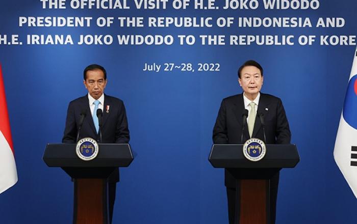윤석열 대통령은 28일 “인도네시아와 변화하는 국제정세에 맞춰 양국 간 전략적 차원의 협력을 더욱 강화하기로 했다”고 밝혔다.이날 조코 위도도 인도네시아 대통령과 정상회담 후 공동발표문에서 윤 대통령은 “인도네시아는 아세안의 선도국이자, 동남아 국가 중 유일하게 우리와