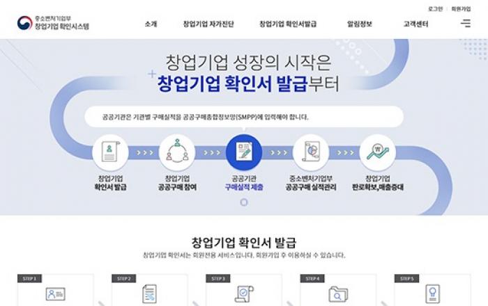 중소벤처기업부는 창업기업 여부를 확인하고 확인서를 발급해주는 ‘창업기업 확인시스템(https://cert.k-startup.go.kr)’을 22일부터 내년 1월 31일까지 시범운영한다고 21일 밝혔다.이는 ‘창업기업제품 공공기관 우선구매 제도’에 참여하는 기업