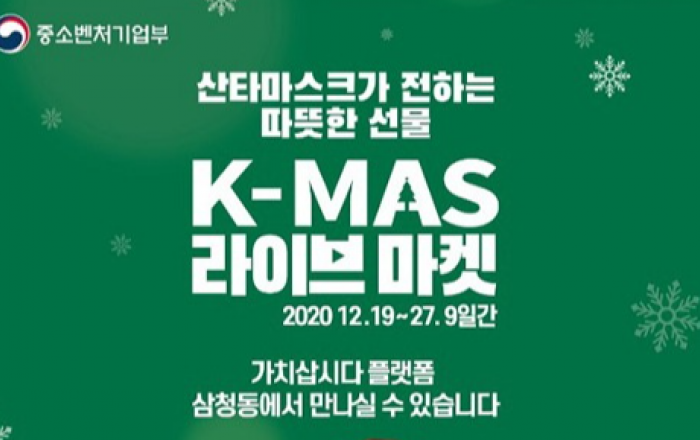 중소벤처기업부는 오는 19일부터 27일까지 열리는 소상공인 제품의 비대면·온라인 소비 촉진 행사인 ‘메리 K-마스! 2020 크리스마스 마켓’에서 특별행사를 진행한다고 17일 밝혔다.‘크리스마스 마켓’은 지난해에 이어 올해 두번째 진행하는 중기부의 소