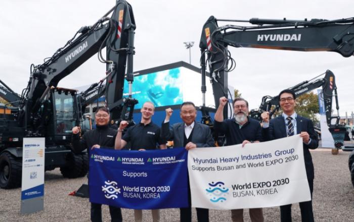 현대중공업그룹 건설기계 3사(현대제뉴인, 현대건설기계, 현대두산인프라코어)가 유럽에서 열린 대형 전시회에서 ‘2030세계박람회(엑스포)’ 부산 유치 활동에 적극적으로 나섰다.현대제뉴인, 현대건설기계, 현대두산인프라코어는 24일(월)부터 30일(일)까지 독일 뮌헨에서 열