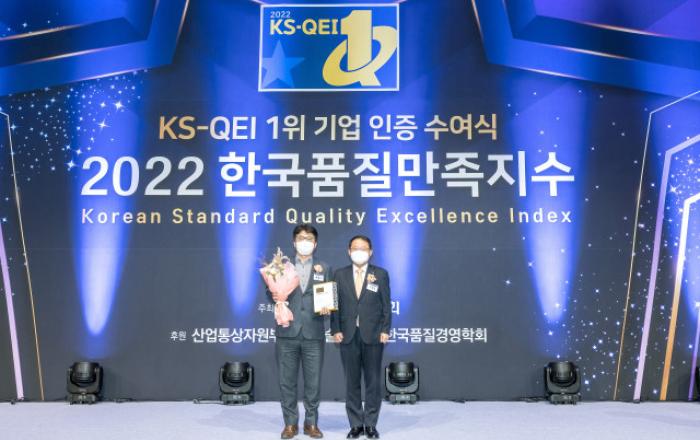 KCC가 KCC글라스, KCC실리콘과 함께 21일 서울시 중구 롯데호텔에서 열린 ‘2022 한국품질만족지수(KS-QEI) 인증 수여식’에서 건축자재 관련 9개 부문에서 1위 기업으로 선정됐다. 수상 부문은 KCC가 △수성도료 △유성 도료 △석고텍스 천장재 △그라스울 단