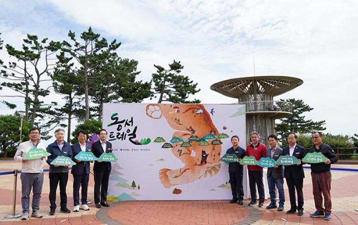 한반도의 동쪽과 서쪽을 연결하는 숲길인 ‘동서트레일’의 조성 사업이 시작됐다. 산림청은 28일 ‘동서트레일’의 시작이자 끝인 경북 울진군 망양정에서 조성사업의 시작을 알리는 착수행사를 열었다고 밝혔다. 이날 행사에는 산림청, 경북도, 울진군, 우리금융그룹이 참여