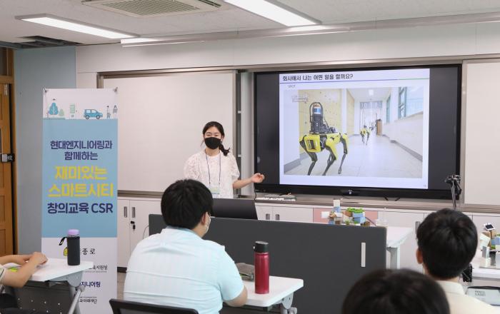 현대엔지니어링이 종로구청, 아이들과미래재단, 서울시중부교육 지원청과 함께 종로구 관내 중학생을 대상으로 ‘재미있는 스마트시티’ 창의교육을 진행한다고 18일(목) 밝혔다. 이번 ‘재미있는 스마트시티’ 창의교육은 ▲ 건설업에 대한 소개 ▲ 스마트시티 ▲ 스마트 건설기술 ▲