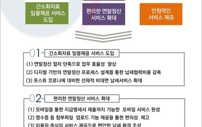 국세청은 오는 15일부터 홈택스에서 근로자의 연말정산 간소화자료를 조회할 수 있는 ‘연말정산 간소화 서비스’를 개통한다고 밝혔다.‘간소화자료 일괄제공 서비스’ 이용을 희망하는 회사는 근로자로부터 간소화자료 일괄제공 신청서를 제출받아 신청 근로자 명단을 14일까지 홈택스