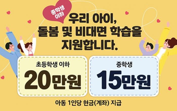 정부는 지난 22일 국회에서 의결된 ‘아동 특별돌봄·비대면 학습 지원’ 사업을 본격 추진한다고 24일 밝혔다.이번 사업은 코로나19로 가중된 부모의 돌봄 부담 경감을 위해 미취학·초등학생 아동 1인당 20만원을 지원하는 ‘아동 특별돌봄 지원’ 사업과 의무교육인 중학교
