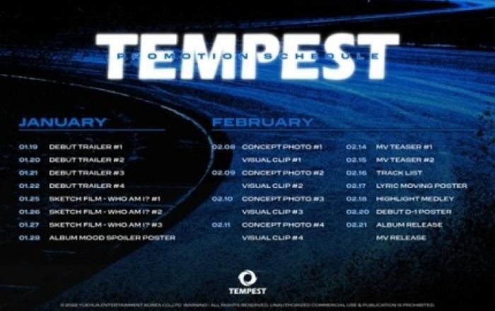 위에화엔터테인먼트 신인 보이그룹 템페스트(TEMPEST)가 오는 2월 가요계에 첫 발을 내딛는다.템페스트는 지난 18일 공식 SNS를 통해 커밍순 이미지와 타임테이블을 공개하며 오는 2월 21일 데뷔를 알렸다.공개된 자료에 따르면 템페스트는 19일 데뷔 트레일러 공개를