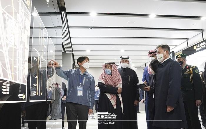 사우디아라비아를 방문 중인 문재인 대통령은 19일(현지시간) 삼성물산이 부분 시공한 리야드 메트로 건설현장을 방문했다.리야드 메트로는 사우디 최초의 메트로 건설현장이자 리야드 최초의 대중교통 시스템으로 도심 내 168km에 달하는 6개 노선 중 3개 구간, 64km를