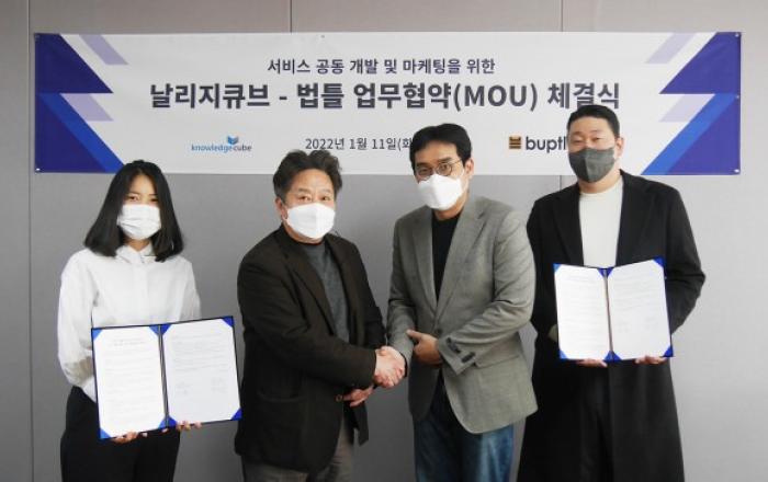 업무포털 전문 기업 날리지큐브와 리걸테크 전문 기업 법틀이 비대면 디지털 업무 플랫폼 확장을 위한 MOU를 체결했다고 12일 밝혔다.이번 협약은 날리지큐브의 클라우드 업무포털 ‘KCUBE ON (케이큐브온)’과 클라우드 기업 법무 관리 시스템 ‘법틀’을 연동해 통합 업
