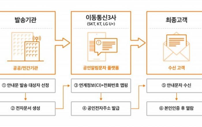 SK텔레콤은 KT, LG유플러스와 함께 ‘공인알림문자’ 서비스를 공동으로 개시한다고 11일 밝혔다.공인알림문자 서비스는 공공·민간기관 등에서 발송하는 종이 우편 고지서와 안내문 등을 전자문서화해 문자메시지(MMS, RCS)로 발송하는 모바일 전자고지 서비스다.▲ 공인