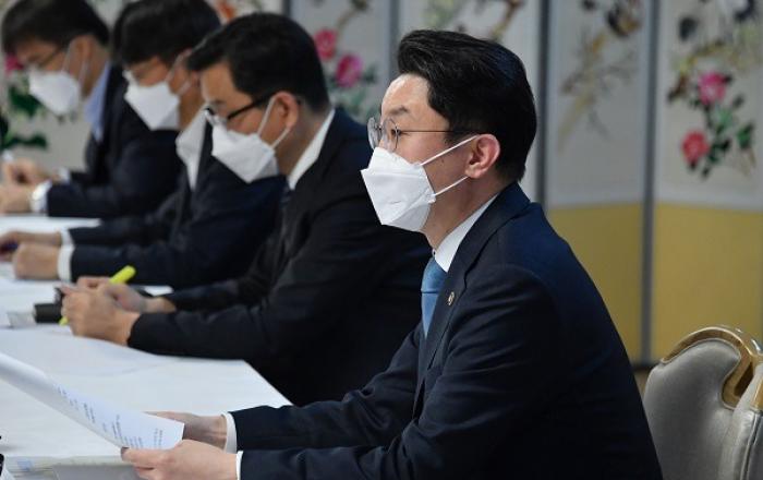 정부가 최근 급등한 소비자 물가 관리에 가용 수단과 정책역량을 총동원해 대응하기로 했다. 정부는 3일 정부서울청사에서 이억원 기획재정부 제1차관 주재로 물가관계차관회의를 열고 안정적인 물가 관리 방안에 대해 논의했다.▲ 이억원 기획재정부 차관이 3일 서울 광화문 정부청