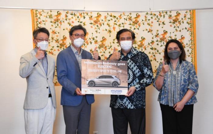 현대자동차가 15일 주한 인도네시아 대사관(서울 영등포 소재)에서 우마르 하디(Umar Hadi) 주한 인도네시아 대사, 현대차 김창범 자문역(전 주인니 한국대사), 현대차 김경수 상무 등 주요 관계자가 참석한 가운데 아이오닉 5 전달식을 진행했다고 16일 밝혔다.인도