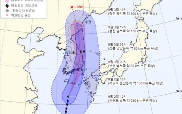 중앙재난안전대책본부는 2일 오전 9시를 기해 전국에 제9호 태풍 ‘마이삭’ 위기경보 수준 ‘심각’ 단계를 발령하고, 대응 수위를 비상 3단계로 격상해 대응하기로 했다. 이에 앞서 중대본에서는 지난 1일 오후 6시부터 위기 경보 ‘경계’, 중대본 비상 2단계를 가동해
