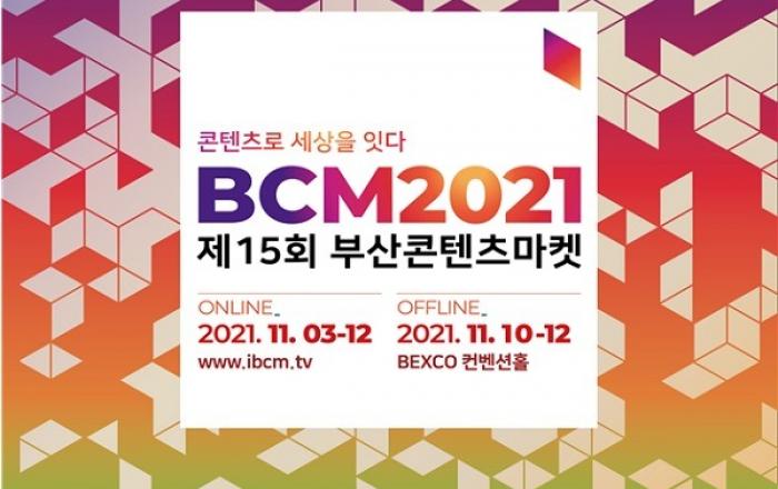 문화체육관광부는 부산광역시, (사)부산콘텐츠마켓조직위원회와 함께 3일부터 12일까지 ‘부산콘텐츠마켓(BCM) 2021’을 공식 누리집(www.ibcm.tv)과 부산전시컨벤션센터(BEXCO) 컨벤션홀(11월 10~12일)에서 온·오프라인으로 개최한다고 밝혔다. 올해로 1