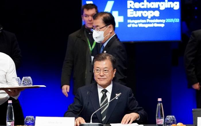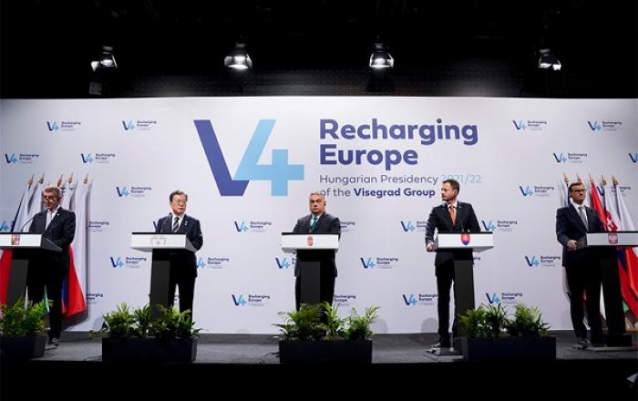 헝가리를 국빈 방문 중인 문재인 대통령은 4일(현지시간) 헝가리·슬로바키아·체코·폴란드 등 비세그라드 그룹(V4) 총리들과 제2차 한-V4 정상회의 및 업무 오찬을 갖고 ▲한-V4 관계 증진 ▲코로나19 이후 경제 회복을 위한 실질 협력 강화 ▲지역 정세 등에 관해 심