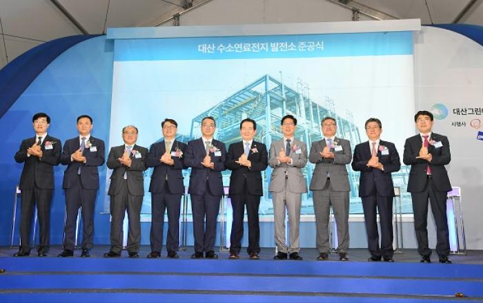 세계 최초 부생수소 발전소인 ‘대산 수소연료전지 발전소’가 28일 준공됐다. 산업통상자원부는 이날 충남 서산시 대산산업단지에서 정세균 국무총리와 정승일 산업통상자원부 차관, 한화에너지 정인섭 대표이사 등이 참석한 가운데 준공식이 열렸다고 밝혔다.▲ 정세균 국무총리가