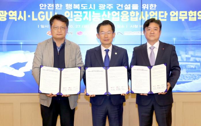LG유플러스가 광주광역시와 함께 인공지능 산업 발전을 위한 협력에 나선다. LG유플러스는 광주광역시(이하 광주시), 인공지능산업융합사업단과 인공지능을 활용한 CCTV통합관제센터 관제기술 고도화를 위한 업무협약을 체결했다고 27일 밝혔다. 협