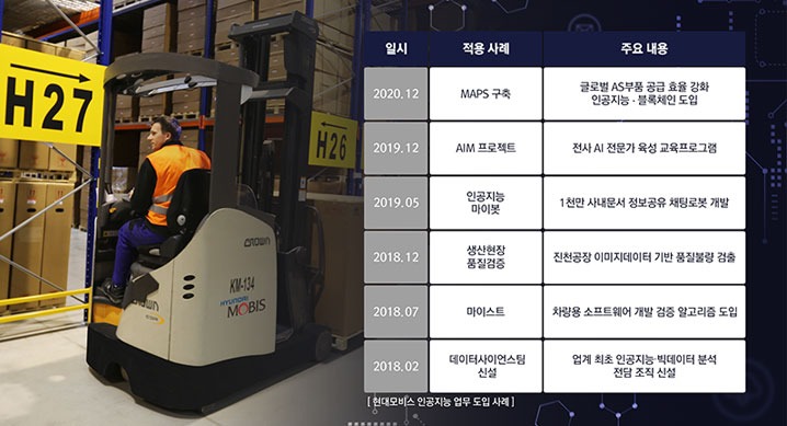 한편 현대모비스는 지난 2018년 인공지능과 빅데이터 분석 등을 담당하는 데이터사이언스팀을 업계 최초로 신설하며 연구개발과 생산현장 등에 AI기술을 확대 적용하고 있다.