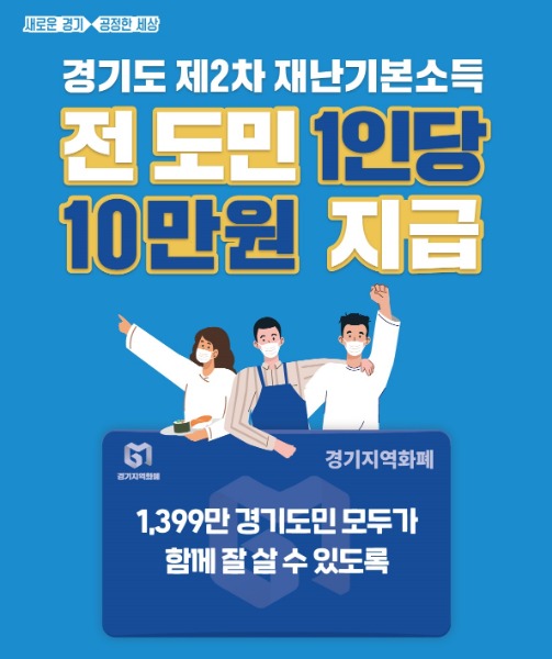 이재명 경기도지사는 2020년 작년에 이어 올해도 나이, 직업, 소득에 관계없이 모든 도민에게 1인당 10만원씩 ‘2차 재난 기본소득’을 지급하겠다고 밝혔다. 특히 올해는 1차 재난기본소득 때 지원하지 못했던 외국인과 외국국적동포까지 포함해 2021년 1월 19일 24시 기준 경기도에 주민등록을 둔 약 1399만 명의 경기도민이 지원 대상이 된다.