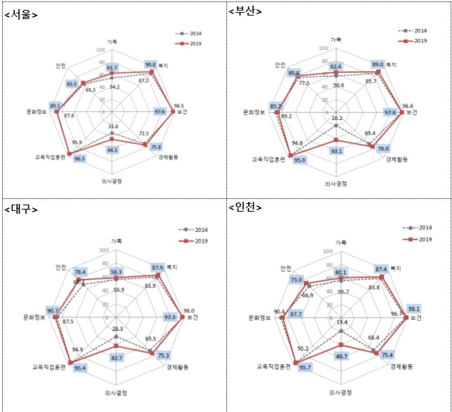 2018년과 비교해 보면, 광주가 중하위에서 상위 지역으로 가장 크게 상승하였고, 대전은 중상위에서 상위 지역으로 상승하였다. 반면, 대구와 서울은 상위에서 중상위 지역으로 하락하였다.