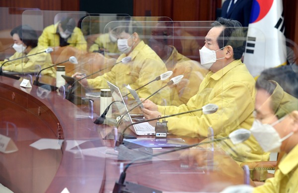 정 총리는 이날 서울 세종로 정부서울청사에서 열린 코로나19 중앙재난안전대책본부 회의를 주재한 자리에서 “정부가 방역을 위해 수시로 영업을 금지하거나 제한하면서 자영업자와 소상공인의 희생을 계속해서 강요할 수만은 없다는 지적에 공감한다”며 이 같이 말했다.
