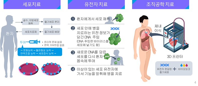 특히 첨단재생의료는 현재 치료법이 없는 희귀·난치질환자 등에 새로운 치료대안이 될 수 있고, 성공할 경우 한 번의 치료로도 효과가 지속되는 등 다양한 확장 가능성을 통해 미래 의료 핵심기술로 평가받고 있다.