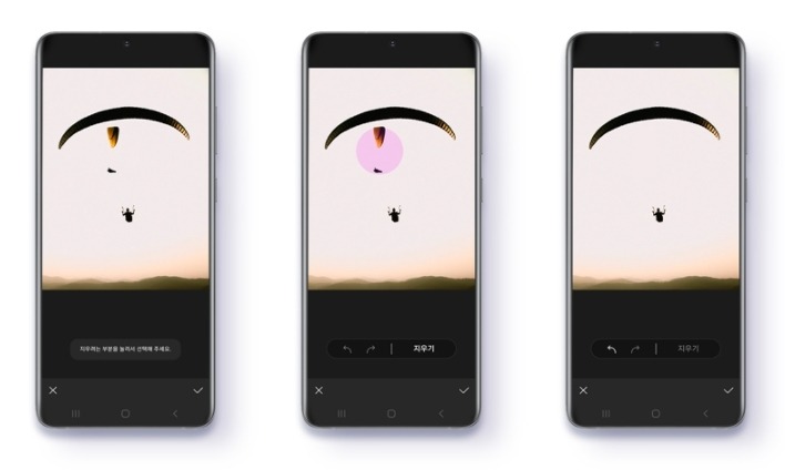 원 UI 3.1은 사진 촬영 후 완벽한 사진을 얻도록 도와주는 편집도구 ‘개체 지우기(AI 지우개)’ 기능을 제공한다. 별도 편집 프로그램을 설치하거나 일일이 제거하고자 하는 부분을 선택하지 않고, 삭제하고자 하는 부분을 터치하기만 하면 자동으로 선택되고, 삭제할 수 있다.