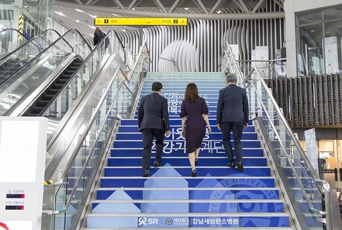 SRT 운영사 SR(대표이사 권태명)은 2019년부터 강남세브란스병원과 공동으로 SRT 수서역에 건강기부계단을 운영하고 있다. 고객이 계단 한 칸을 이용할 때마다 양 기관이 10원씩 부담하여 20원이 적립된다. 코로나19 감염증으로 이용객이 줄었지만 기부문화 확산을 위해 SR과 강남세브란스 병원이 총 2,000만 원의 기부금을 조성했다.