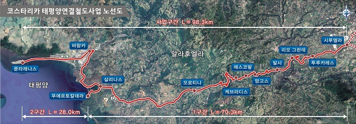 이번 용역은 코스타리카 수도권지역인 산호세와 태평양 연안의 푼타레나스를 연결하는 철도노선(98.3km) 복원사업으로 공단은 국내기업(동일기술공사, 수성엔지니어링)과 공동으로 참여하여 현지 시장분석, 환경평가 등 사업의 타당성 여부를 검증하게 된다.