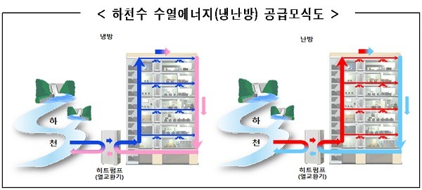 수열에너지 공급은 여름철 수온이 대기보다 낮고, 겨울철에는 높은 특성을 활용해 물을 열원으로 히트펌프를 통해 냉·난방을 하는 시스템이다.