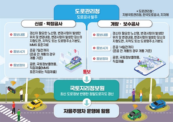 앞으로는 신설·확장·개량·보수 등 도로공사가 마무리될 때 도로 변경 사항이 자율주행차 운행을 위한 정밀도로지도에 즉각 반영된다.