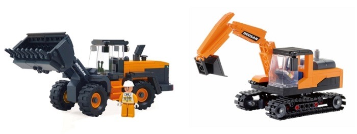 굴착기와 휠로더 토이블록은 국내 블록 장난감 제조회사 옥스포드와 함께 제작했다. 블록 장난감임에도 실제 두산 굴착기, 휠로더와 매우 흡사하게 구현됐다.