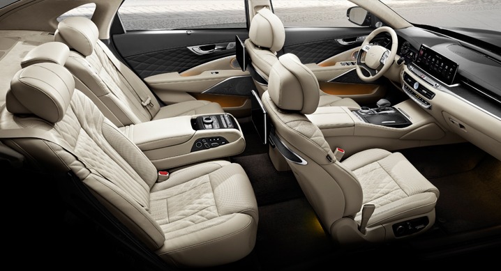 내부는 시트의 허리받침, 쿠션까지 확대된 퀼팅 패턴과 고급스러운 리얼 우드 소재, 다이아몬드 패턴의 컨트롤러 등을 통해 인테리어의 품격을 한층 높였다.