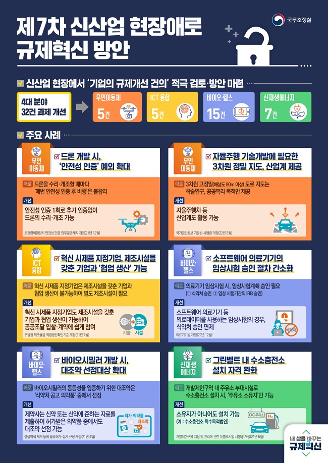 국무조정실은 17일 이 같은 내용을 담은 ‘제7차 신산업 현장애로 규제혁신방안’을 발표했다.
