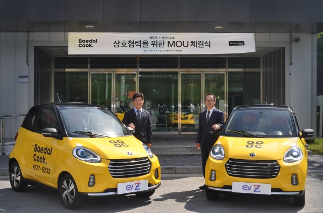 코스닥 상장사 쎄미시스코는 국내 최초 복합형 공유 주방 브랜드 배달쿡과 친환경 배달 플랫폼 구축을 위한 업무 협약을 체결했다고 9일 밝혔다. 이번 업무 협약으로 배달쿡은 쎄미시스코의 경형 전기차 EV Z(이브이제타)를 활용해 환경 보호에 이바지하는 배달 시스템을 구축할 계획이다.